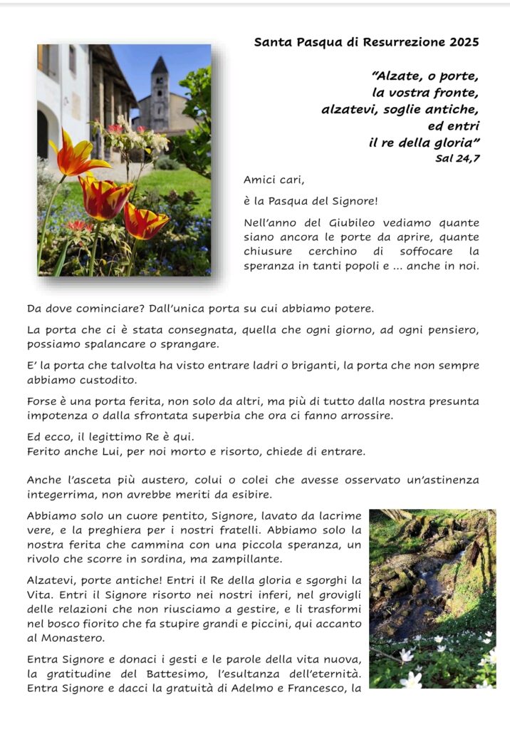 Meditazioni MEDITAZIONE ABBRACCIA LA VITA GIUGNO 2025 meditazione ABBRACCIA LA VITA giugno 2025E’ possibile visualizzare o scaricare la meditazione cliccando sul titolo MEDITAZIONE GIOVEDì SANTO 2025 E’ possibile visualizzare o scaricare il file cliccando sul titolo Lettera di Pasqua agli amici A breve caricheremo qualche riflessione sul Cantico delle Creature nell'Ottavo Centenario della sua composizione
